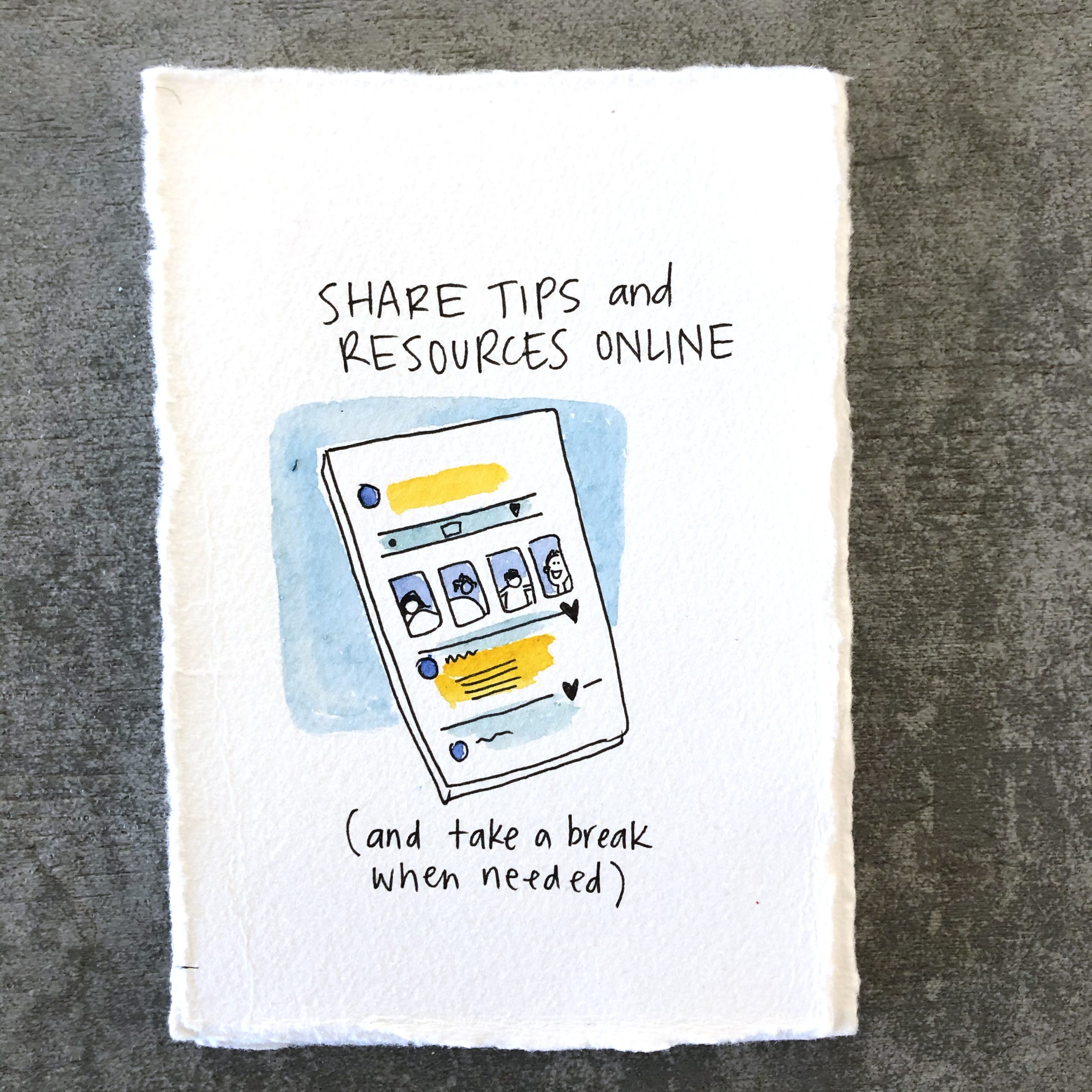 - Share tips and resources online (take a break when needed)