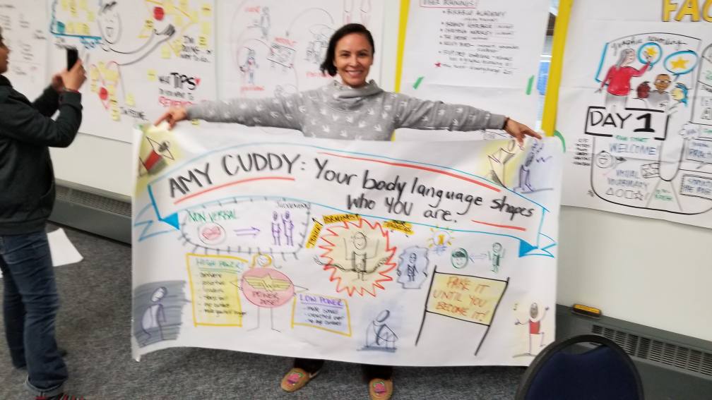 Do you recognize that tiny voice of Compar-itis, or the voice of Not Good Enough, when you try something new? At Drawing Change trainings, instead of inviting perfectionism, we practice appreciation and gratitude towards ourselves and others. We write zillions of post-it notes of appreciation on each other’s first graphic recordings, to notice what works.
